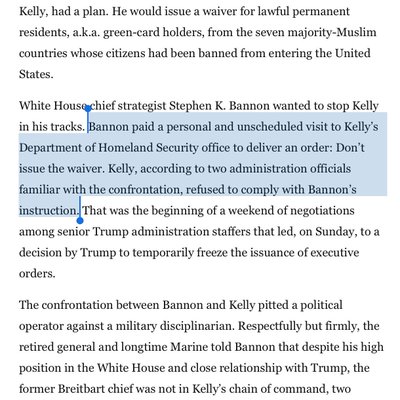 Bannon ordered Kelly not to exempt green card holders from the ban. Kelly ignored him.